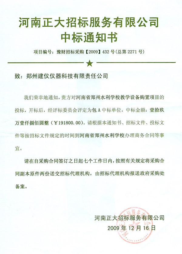 豫財招標(biāo)采購(2009)432號