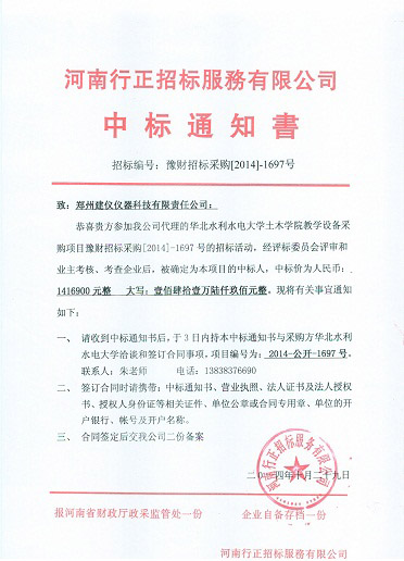2014-1697中標(biāo)通知書