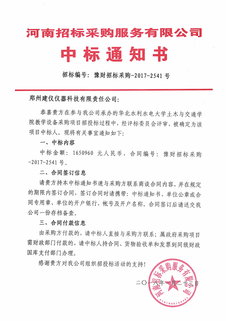 華北水利水電大學土木與交通學院豫財招標采購-2017-2541