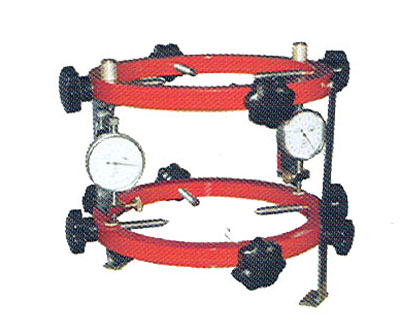 用途: 主要用于測定混凝土棱柱體或圓柱 體試件的靜力受壓彈性模量。 技術參數(shù): 1、千分表量程:0-1mm 2、上、下環(huán)中心距:150mm 3、試件尺寸:φ150×300mm,150×150×300mm,100×100×300mm 4、凈重:5kg