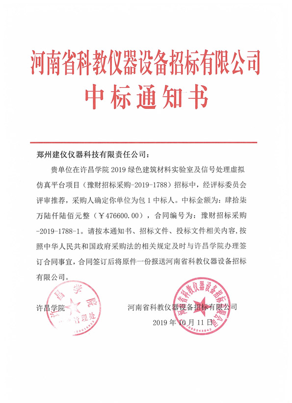 上一篇:焦作千業(yè)新材料儀器設備中標通知書