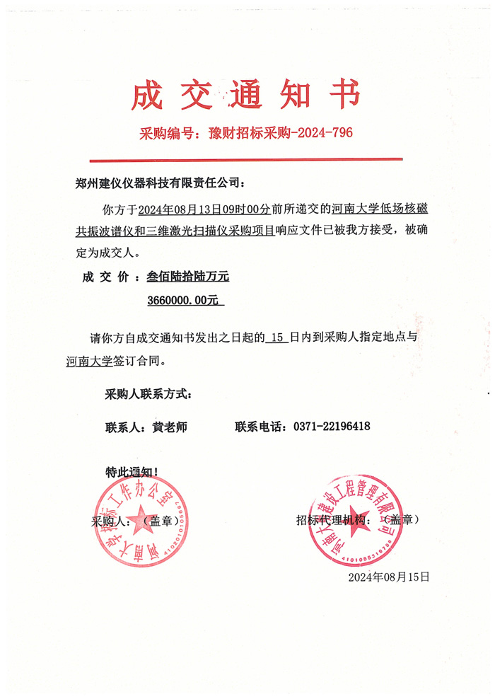 2024-796河南大學(xué)低場(chǎng)核磁共振波譜儀和三維激光掃描儀采購(gòu)項(xiàng)目